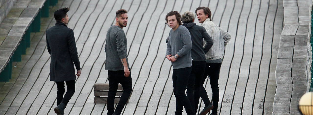 Os One Direction foram vistos, na Segunda-feira, a fazer gravações noClevedon Pier, em Somerset, Inglaterra, depois da banda ter estado de férias durante 3 meses.